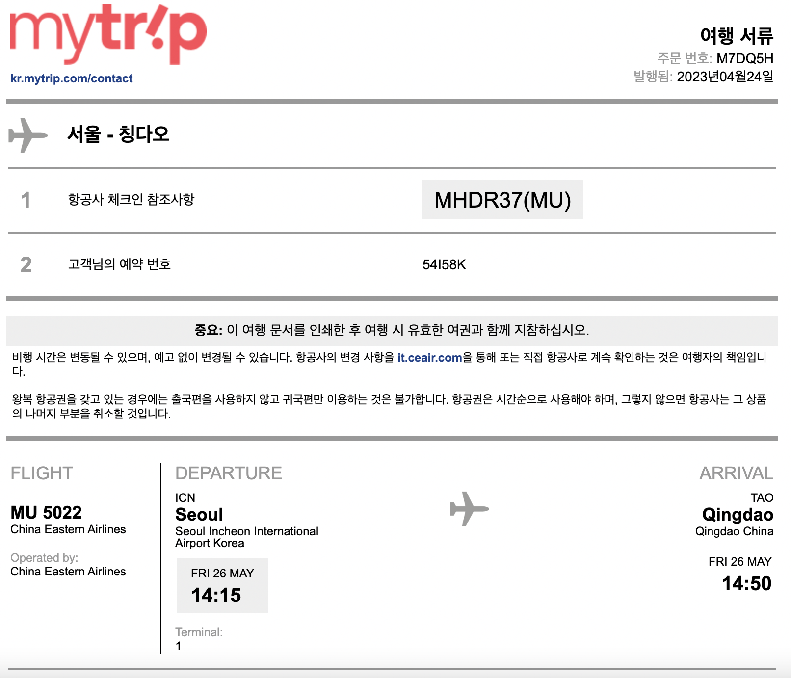 - 여행 목적지도 단순하게 작성해야함 "칭다오 맥주공장 - 노산 - 극지해양세계 - 5.4 광장" 정도로(?)