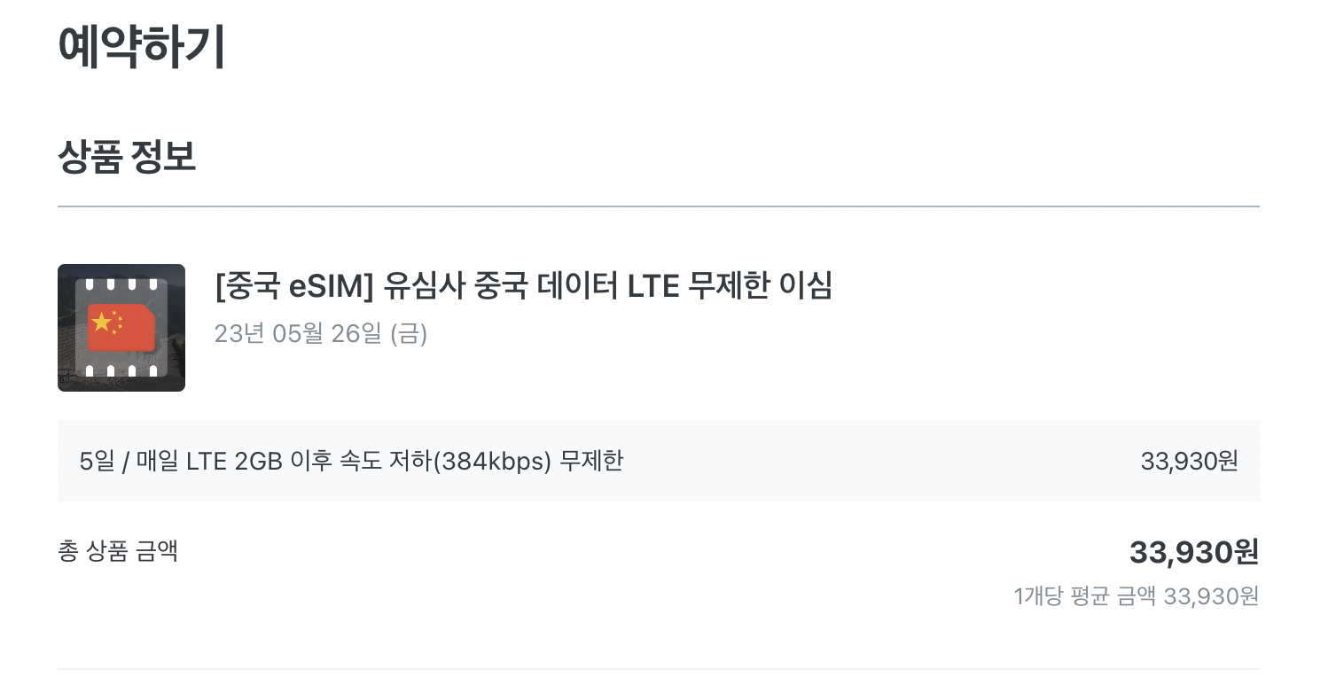 4. 유심(ESIM) - 마이리얼 트립 33,930원
